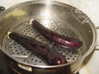 茄子洗净,放入蒸锅,蒸10分钟,关火,凉凉。