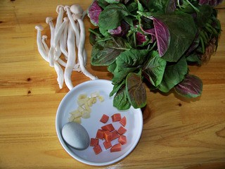 苋菜洗净去根,火腿切粒,蒜子去皮切粒待用