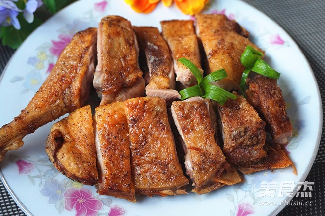 炒盐时用海粗盐最好,现在市场很难买粗盐,所以我用平时炒菜用的食盐来代替。 鸭子经调味品腌渍,再上笼蒸至熟烂,最后经油炸而成。此菜色泽红亮,口感皮脆肉酥。以葱白、甜面酱、番茄酱佐食,味更丰富。