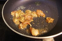 热锅下油,放入腌制好的鸡丁翻炒。