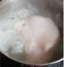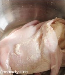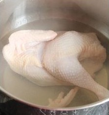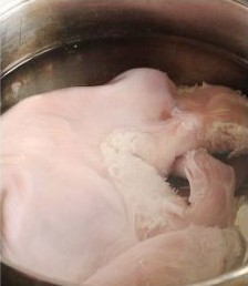 先把鲜鸡洗干净,然后入水焯水一次,去掉浮沫,过凉水