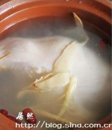 食用:先喝汤,将煮好的猪肚鸡捞出放凉了