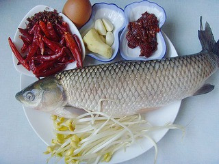 材料:草鱼、黄豆芽 调味:鸡蛋清、姜、蒜、郫县豆瓣酱、辣椒若干、花椒适量、盐、淀粉、料酒。