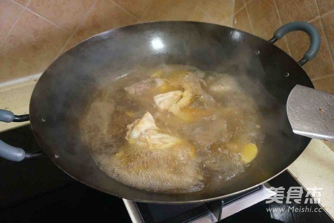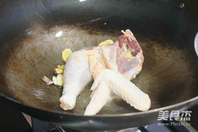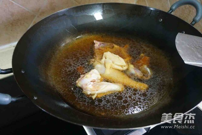 盖上锅盖开中火煮半小时左右,偶尔翻一下鸡肉