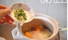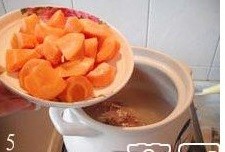 5.一个半小时后,把胡萝卜放进去,大火煲沸改小火煲3分钟;