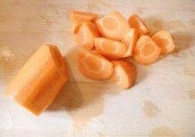 3.在炖汤过程中准备好一些烹饪材料:胡萝卜滚刀切