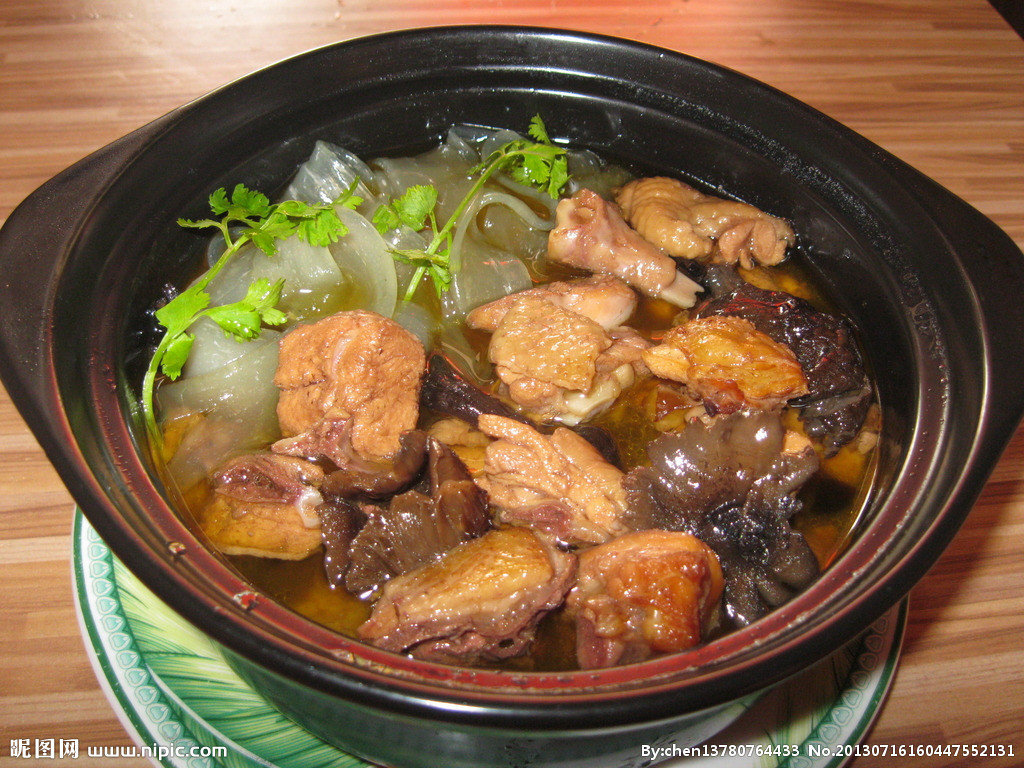 【功效】小鸡炖蘑菇含钙、磷、铁、蛋白质、胡萝卜素、维生素C等营养成份,经常食用可预防视力减退,夜盲症,皮肤干燥;并增强对呼吸、消化道传染病的抵抗力。