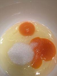 鸡蛋两个,加入30g砂糖打散至糖融化
