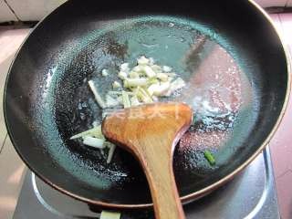 置锅火上,加入适量的油烧热, 倒入葱白,姜丝,蒜末爆香