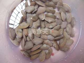 花甲表面洗净,浸泡在干净水里,放少许盐静置,让花甲尽可能将沙吐干净,直到要开始炒花甲再捞出用清水多冲几遍,然后沥干水分备用