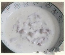 里脊肉切成合适大小的条状,放入葱姜水,盐,胡椒粉和香油腌制大约10分钟。