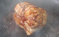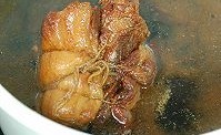 然后倒入适量浓口酱油(没有的用老抽)加少许味啉。然后换一炖锅,倒入适量水,加葱段/姜片/适量盐,加盖炖1小时后,与汤汁一起放入冰箱冷藏2小时后切片。