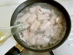 然后把排骨转到砂锅里大火烧开后转小火盖上盖子慢慢的煲。