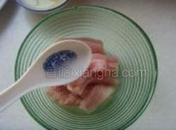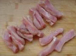 1.将洗好的里脊肉用刀切成长宽相等的里脊条。