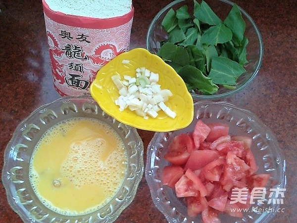 鸡蛋打散,西红柿洗净切小块,青菜洗净切小段,小葱切成葱花