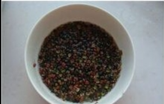 一小把花椒和一小把麻椒用水洗净,捞出后与凉油一起放在锅中,慢慢炸出香味关火