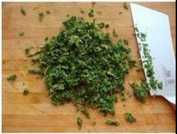 花椒叶摘去老叶,用沸水焯一下浸泡凉水中片刻,之后将花椒叶挤净水份,切成细末