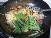 准备好大蒜苗、黄豆芽、腊肉、干辣椒