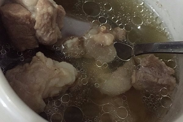 1. 田七洗干净,排骨照样是冷水煮出血水,再冲冷水后放入炖盅。