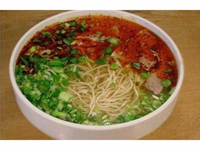 拉面:醒好的面片(约需2小时)切成约1cm宽细条,锅中倒足量开水,一根根将面拉入锅中。