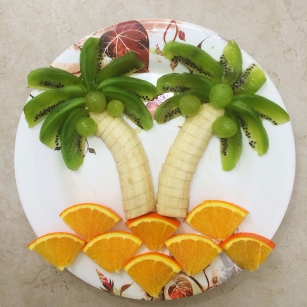 葡萄剥皮,水果切块,如图摆放