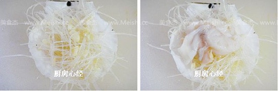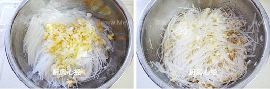 蒜粒与粉丝混合,加入盐;鸡精;胡椒粉拌匀