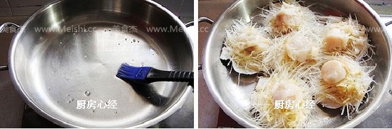 铁锅空烧3-5分钟后,再刷油,码好扇贝