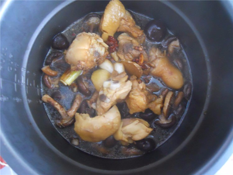 28.盖上高压锅盖,密封好,按鸡肉键。