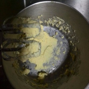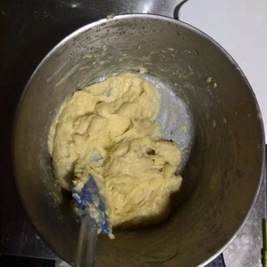 筛入低筋面粉搅拌均匀,变成这种面糊。