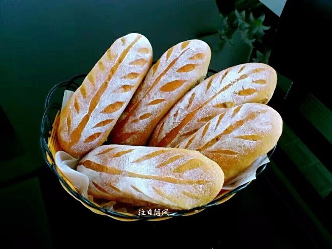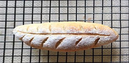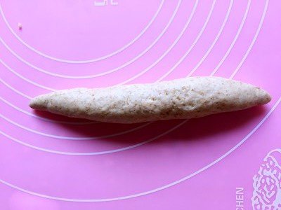 从边缘滚起把边捏紧,撒上干面粉,用刀片中间割一条口两边分别割两条小口成树叶状