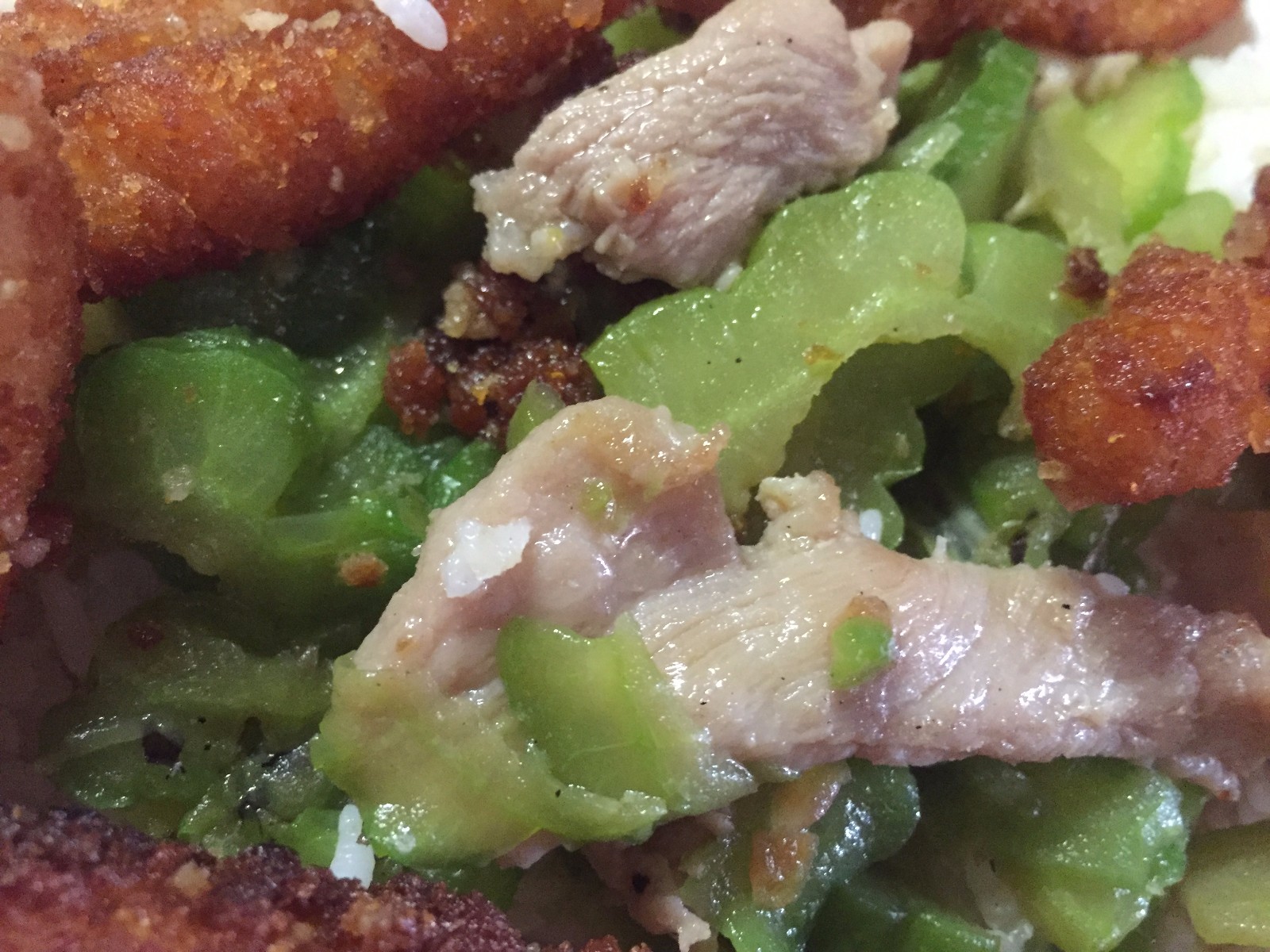 先将猪肉炒熟,想要好吃点可以放点蒜,然后把猪肉铲出,炒苦瓜,要加水焖到软,然后再把炒好的猪肉一起混合入味。