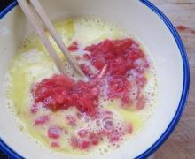 番茄丁后加入打好的蛋液中