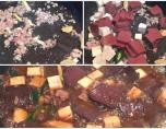开中火 热油锅 先爆香 姜片 大蒜 绞肉 再下猪血 豆腐 辣椒拌炒 加入调味料翻炒至入味 即可盛盘 洒上葱花 香菜 就可享用