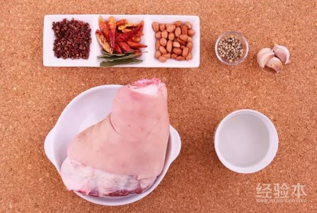 在锅中加入清水、猪蹄、白醋、蒜头,煮15分钟