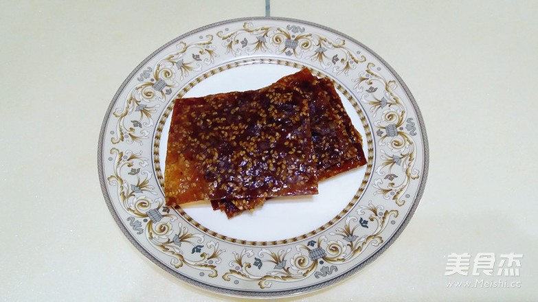 继续刷上蜂蜜水,最后放入烤箱,130度20分钟 香香甜甜的猪肉干新鲜出炉啦,当做早餐配粥,看电视的磨牙小吃都很不错呢! 这是一半肉馅的,另一半进行同样的操作
