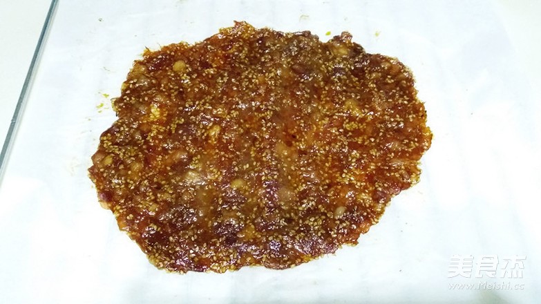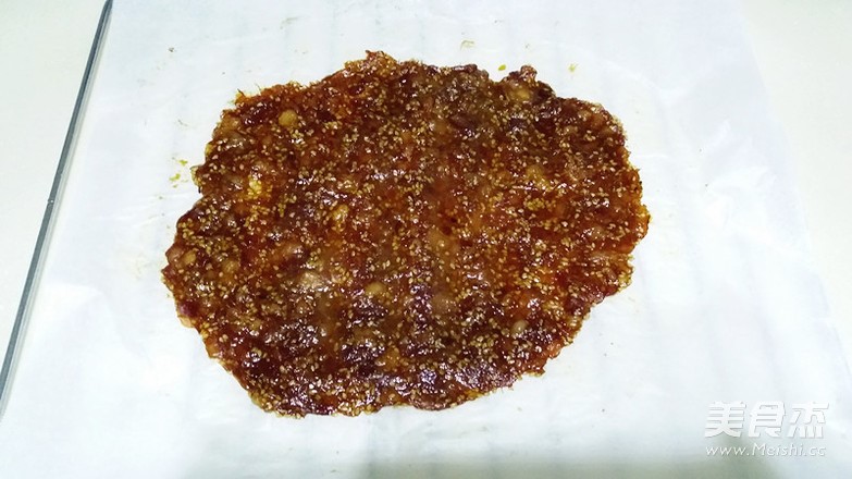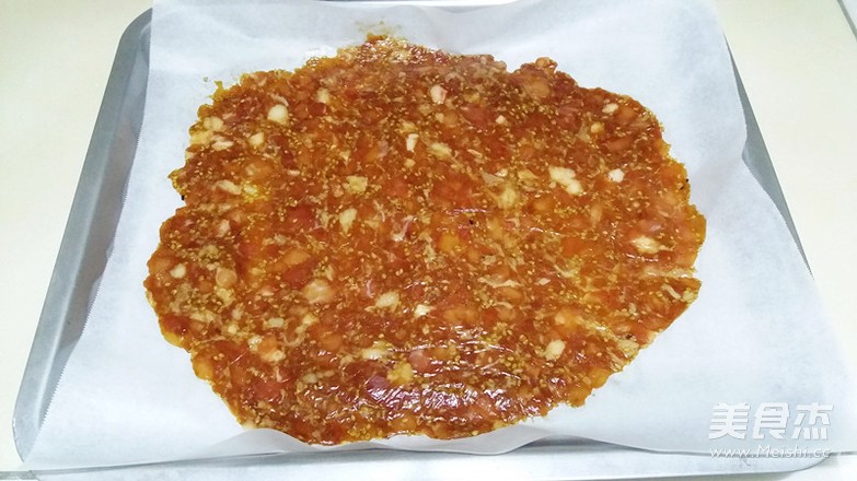 如果够勤劳,自己剁纯瘦肉糜,可以做成三烤盘的,待猪肉脯稍凉,用刀切成块