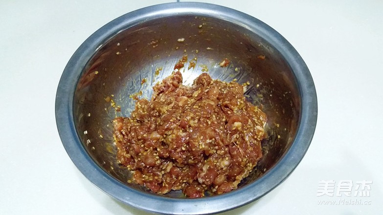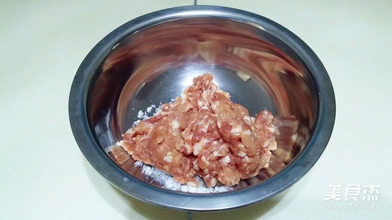 猪肉半斤剁成肉糜,一定要用瘦的,有点懒直接让商家搅成肉馅了,中途发现掺有肥肉会提高制做难度,容易出BUG,加入盐