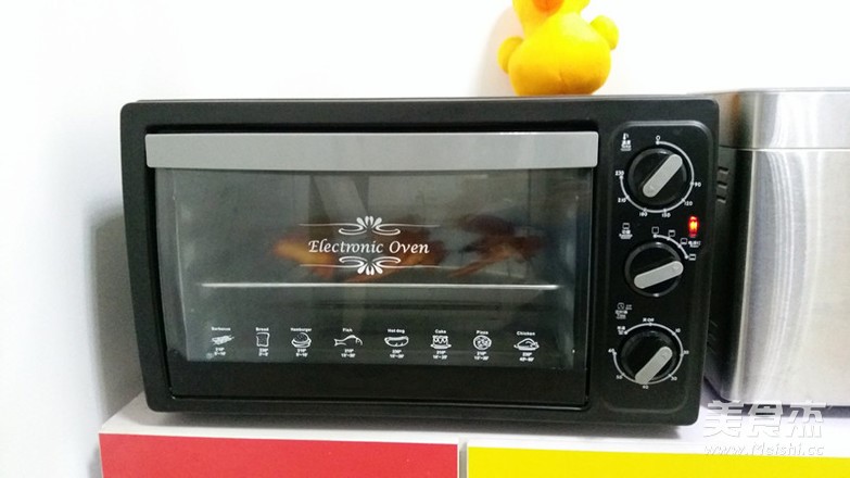 预热烤箱,将烤盘放入烤箱过程照片忘拍了,150度先烤5分钟,再转130度烤10分钟