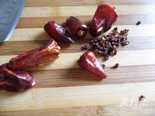准备适量的辣椒和花椒,我用的贵州大红袍色泽好看味道没这么辣