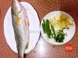 鱼去鳞去内脏去腹黑流水冲净干净后在鱼身上横切几刀用盐腌制半小时,姜切丝,蒜拍扁,葱一半切葱段、一半切葱花备用