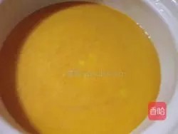 3.咸蛋黄切碎炒成泡泡,放入切碎洋葱炒软备用;红萝卜切块用电锅蒸软备用