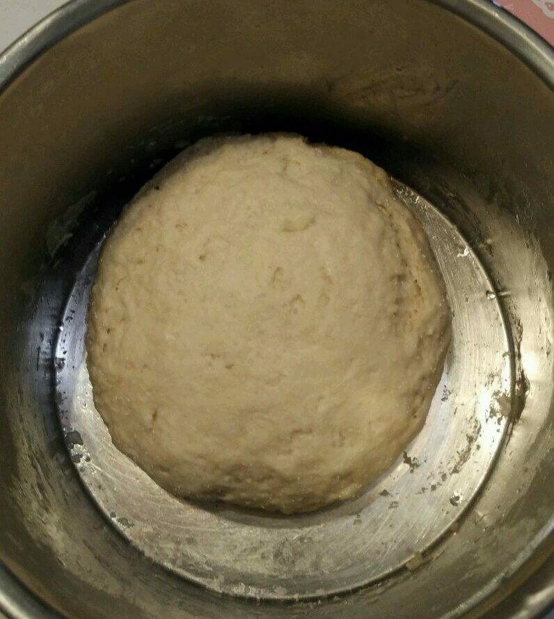 将面团和馅料分成15份。取其中一份面团,里面压出一个小洞
