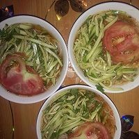 【功效】喜欢吃水果的朋友可以加一些水果粒,这样就变成了水果冷面。清凉解暑,富有营养。加一点辣白菜和鸡蛋就成了韩式大冷面。随您想怎么吃就怎么吃!