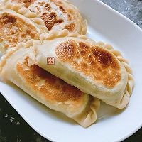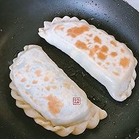 15. 平底锅中倒入少许油,放入韭菜盒子,用弱中火煎至两面金黄色。
