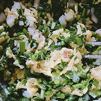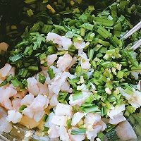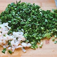 5. 韭菜洗净切碎,虾仁切成小粒,生姜切末。
