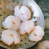 4. 准备做馅料,锅中水烧开,放入虾仁烫至变色捞出。