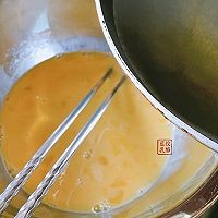 9. 边倒入油,边搅动筷子,让鸡蛋液凝固成滑嫩的鸡蛋块。