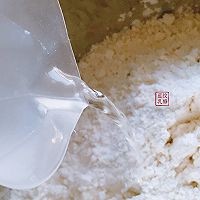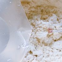 1. 先将热水倒入面粉中,用筷子搅拌成絮状。