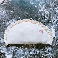 14. 包起馅料成饺子形状,边缘捏出花边褶子。