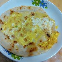 9. 带饼鼓起来后用筷子挑开,倒入蛋液。